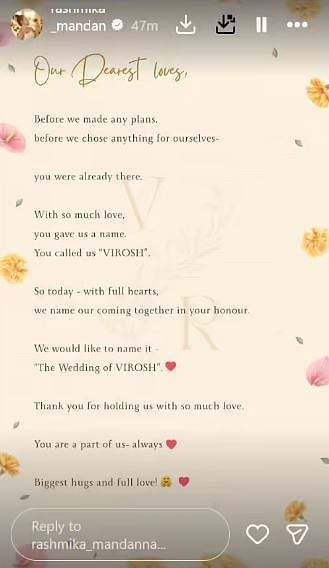 Greatandhra took to X to share the letter sent by PM Modi to Rashmika and Vijay's family. The letter read, "Smt. Madhavi & Shri Goverdhan Rao Deverakonda Ji, It is a pleasure to be invited by you to the wedding of Vijay and Rashmika to be held on 26 February 2026. Heartiest congratulations, and greetings to the Deverakonda and Mandanna families on this truly joyous and auspicious occasion. It marks the beginning of a new, beautiful chapter in the lives of Vijay and Rashmika. With the spirit of ', meaning having taken seven steps together, the couple become friends for life (sic)."
