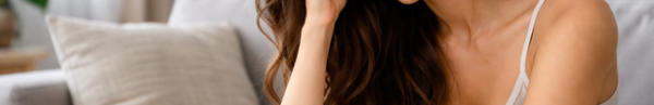 A woman sitting quietly with a stressed expression, representing how emotional pressure and mental exhaustion can silently disrupt the hair growth cycle and lead to sudden hair fall.
