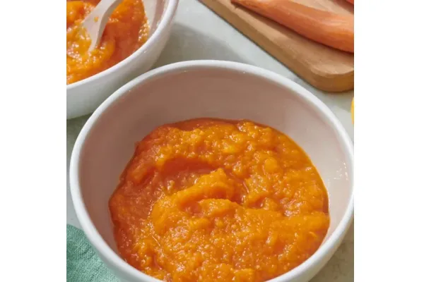 Method: To make carrot puree, first wash carrots well. Peel and cut into small pieces. Then it should be softened by steaming or boiling in water. Blend it smooth with a blender. But mix a little milk with it. Do not forget to give a few spoons of water! The beta-carotene in carrots helps boost the immune system of the baby. Besides, this puree is easy to digest. Nutritious for the body.