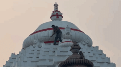 Man Climbs Puri Jagannath Temple's Lion's Gate While Chasing Monkey To Retrieve Bag