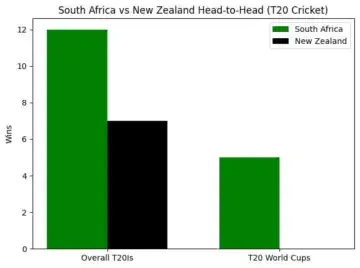 The overall T20I ledger reads South Africa 12, New Zealand 7 from 19 matches. That gap widens sharply on the World Cup stage.