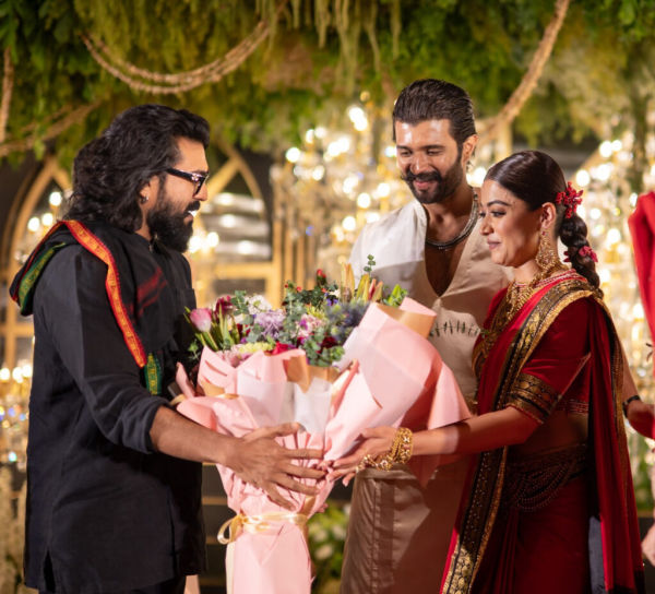 Allu Arjun turned heads in a floral jacket with pastel traditional wear and greeted fans with a smile. Ravi Teja kept it simple in black pants and a grey shirt, met the newlyweds and exited quickly.