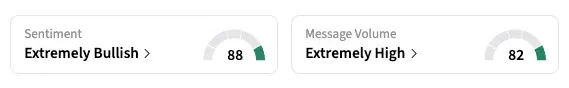 - Stocktwits sentiment climbed to ‘extremely bullish’ to the highest point since Jan. 30.