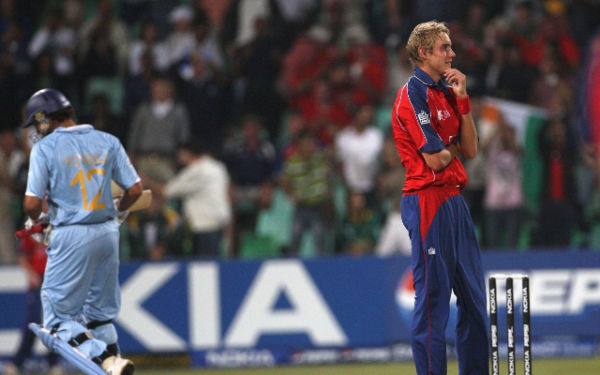 Yuvraj Singh and Stuart Broad. (Photo by Hamish Blair/Getty Images)