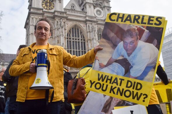 What the King didn't pay attention to was the large group of anti-monarchy protestors chanting across the street. The group of flag-waving Republicans shouted "what did you know" as they wielded banners with photos of his disgraced brother, Andrew Mountbatten-Windsor.