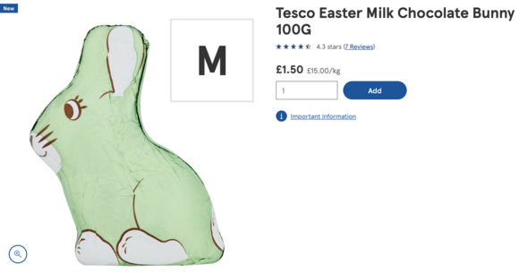They said: "Tesco's supermarket bunny is a great value alternative to the more well-known branded buy, with a very similar creamy flavour.