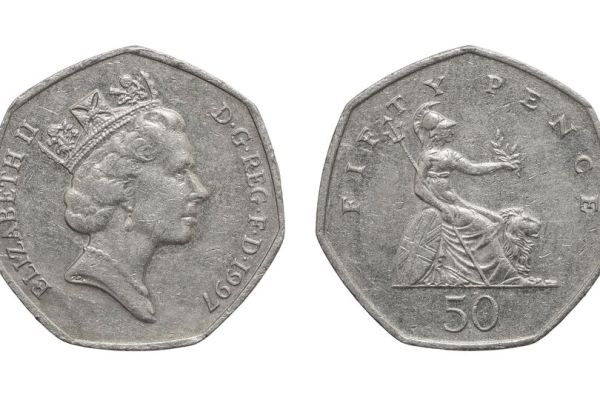 He discussed a 50p coin from 1997. On its obverse side (head side), Queen Elizabeth II's portrait features her wearing a necklace.