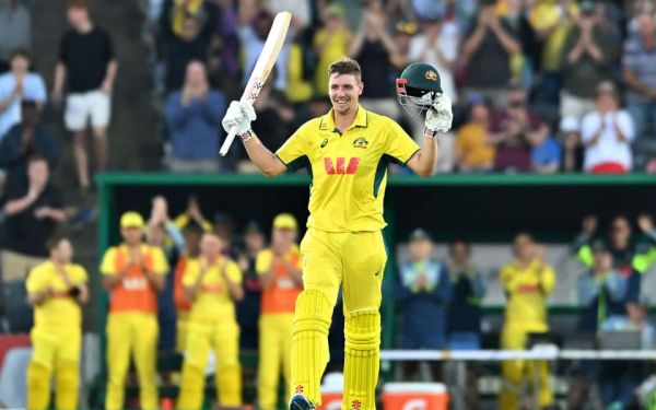 Cameron Green celebrating his hundred during third ODI against South Africa (Source: Getty Images)