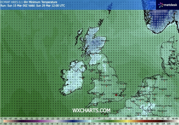 Weather maps suggest large parts of the United Kingdom could face a burst of late-season wintry weather, with forecasters warning that heavy snow and sub-zero temperatures may sweep across parts of the country in the coming days.