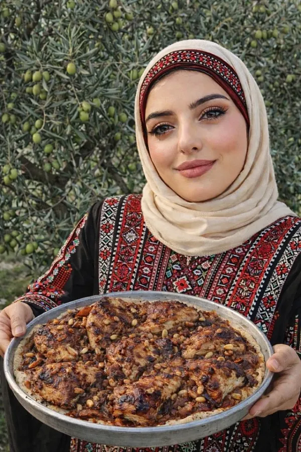 Her favourite iftar dish is Palestinian musakhan: roasted chicken served over flatbread and topped with caramelised onions, olive oil and a sprinkle of sumac. The bread absorbs the rich juices, creating a simple but deeply flavourful dish. “Musakhan reminds me of family gatherings in Palestine,” she says. “Everyone sits around one tray and shares.”