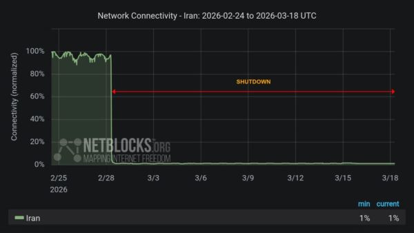 An internet blackout in Iran has entered its 19th day, with international connectivity largely unavailable, according to internet monitoring group NetBlocks. The disruption, now lasting over 430 hours, has severely limited communication, raising concerns over restricted access to information as the conflict continues.