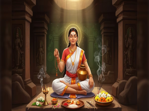 The form of Mother Brahmacharini symbolizes simplicity and asceticism. Adorned in white garments, she holds a *Japa Mala* (prayer beads) in one hand and a *Kamandalu* (water pot) in the other. This imagery represents the power of self-control and spiritual discipline. In astrology, the color white is considered a symbol of the Moon; therefore, wearing white attire on this day is considered auspicious.