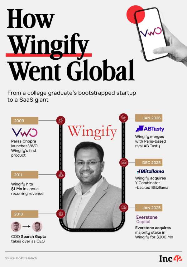 Under Everstone, Wingify took a few turns. The company announced the first acquisition in its history in December 2025 when it struck an all-cash deal to take over AI user research platform Blitzllama for an undisclosed figure, and merged with French rival AB Tasty in late January.