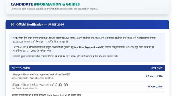 UPTET 2026 Registration Live At upessc.up.gov.in; Apply Before April 26