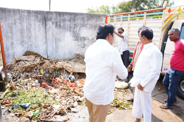 Hyderabad: Malkajgiri MP and Bharatiya Janata Party (BJP) leader Eatala Rajendar on Saturday, March 28, held a dhrana at the Bowenpally market yard alleging that the government not paying sanitation workers has turned the vegetable market into a dumpyard.