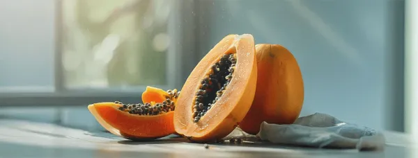 Papaya is a natural boon for the skin, rich in antioxidants like vitamin C, vitamin E, and beta-carotene. It helps to hydrate the skin deeply, reduces acne, fades blemishes and prevents wrinkles. The papain enzyme found in papaya exfoliates the skin, making it look younger and brighter.