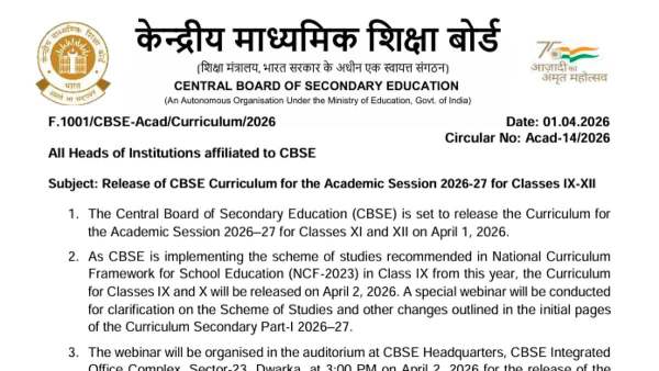 CBSE To Launch New Curriculum For Classes 9 To 12 For Academic Session 2026-27 From April 1