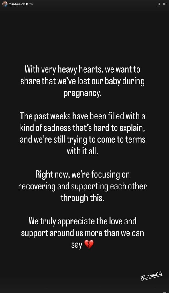 She posted on her Stories: "With very heavy hearts, we want to share that we've lost our baby during pregnancy. The past weeks have been filled with a kind of sadness that's hard to explain, and we're still trying to come to terms with it all.