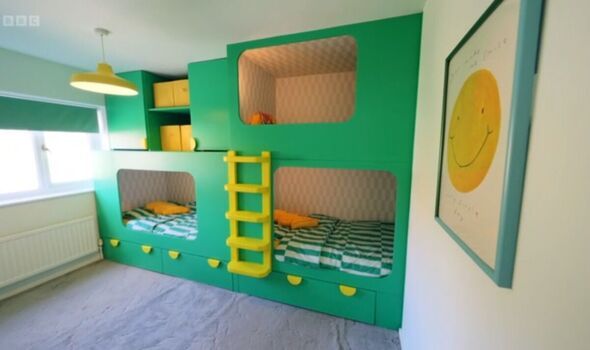 Stacey explained: "Rob really wanted to make this work so that the boys could grow up in these beds and he was determined to get three full-size singles in this space along with actual storage and places to hang stuff."