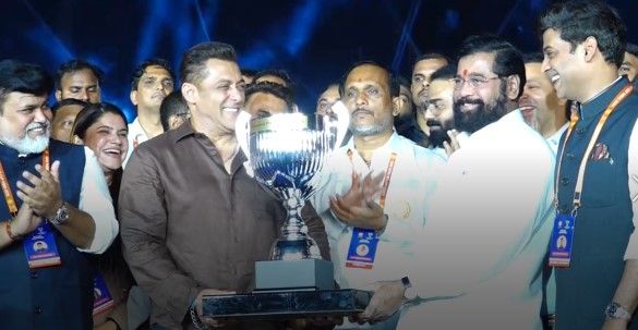 Salman Khan, dressed in a brown shirt paired with black trousers, kept his look understated as he arrived at the venue. He later joined Shinde for the ceremonial moment, posing with the trophy amid loud cheers from the audience.