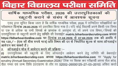 Bihar Board Matric Scrutiny 2026 Application Window Opens At matric.biharboardscrutiny.com: Check Important Details Here