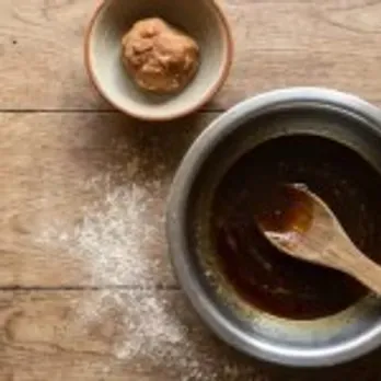 Put jaggery in lukewarm water in a vessel and dissolve it well. Keep in mind that the jaggery dissolves completely and there are no lumps in it.