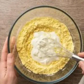 Step 1: Mix gram flour and curd